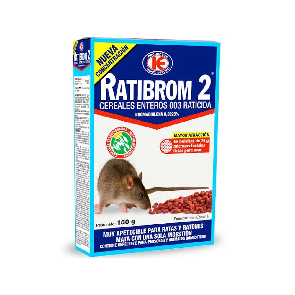 Cebo raticida, preparado con mezclas de cereales enteros, con el fin de facilitar la introducción del veneno. En bolsitas de 25 g microperforadas listas para usar. Contra ratones de campo, ratas de alcantarilla, ratas negras, ratas domésticas, ratones, topos y ratas. Contiene repelente.
